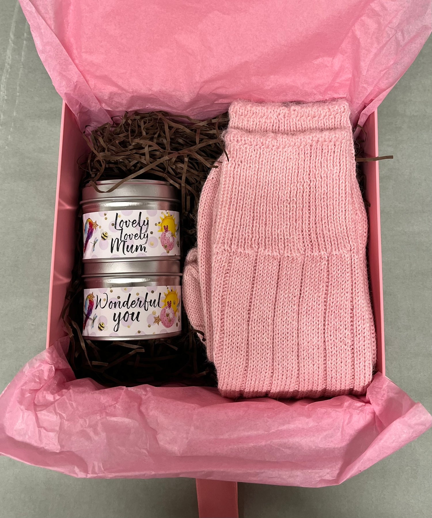 Give Mum the comfort she deserves: alpaca bed socks paired with two indulgent scented candles.